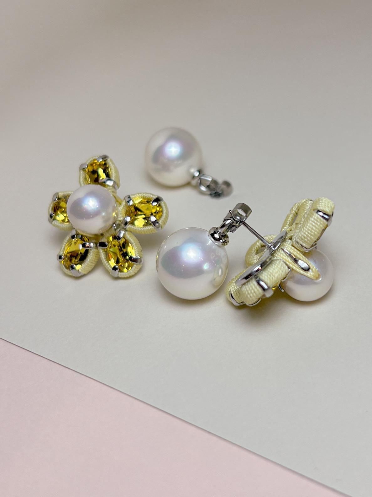 求めたのは、モダンで、いびつで、ニュートラルなバランス。強さにフェードをかけて、優しさとしっかり存在する意思を。忘れていない可愛さへの欲求を今の軸でかたちにしました。ピアスタイプはキャッチにパールがぶら下がっています。
