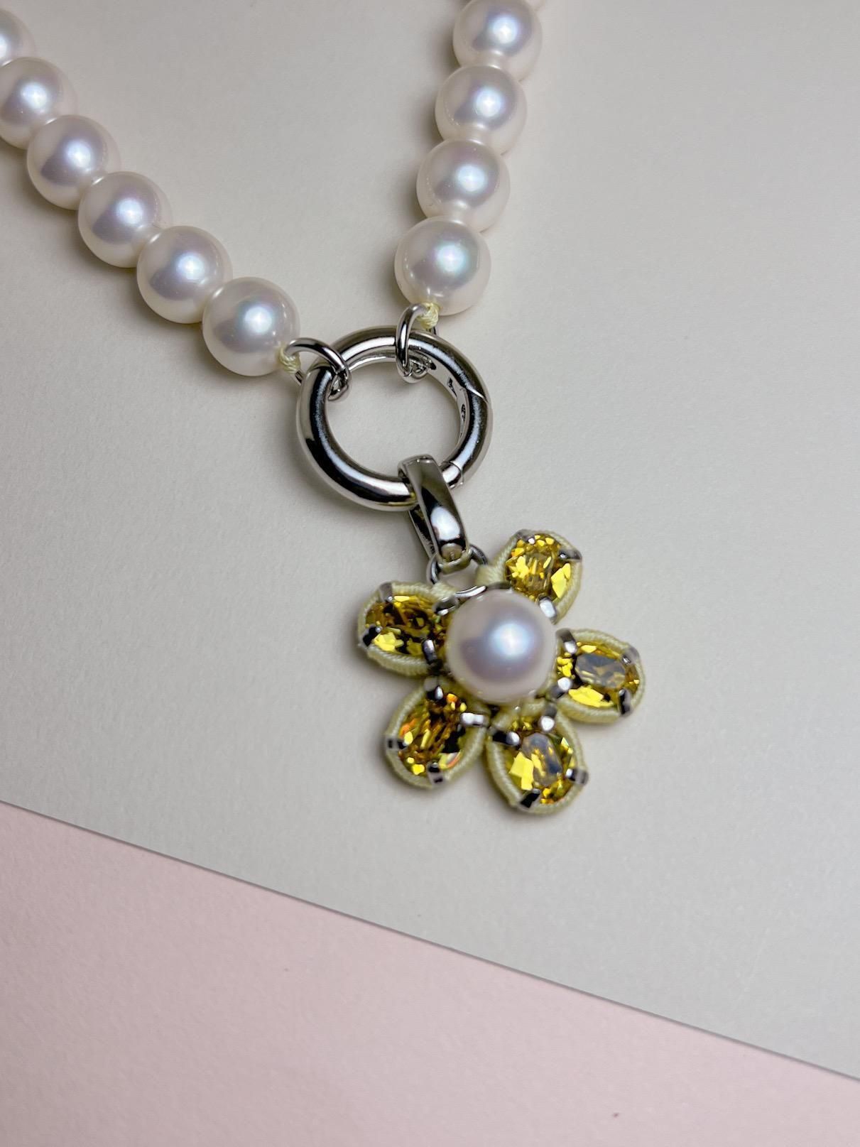 パールのネックレスはトップと同じ糸を使いひと粒ずつ結んで仕上げているのでほどける心配がなく、身につけるほど糸が柔らかくなり首元に馴染みます。そしてトップのチャームを取り替えれる仕様です。今後の展開をお楽しみに。